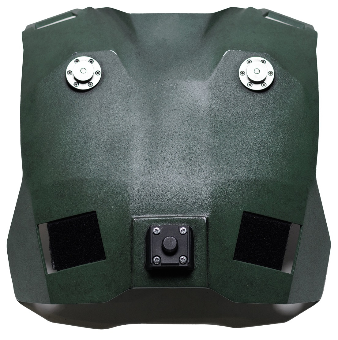 - Armor finish appears as a gradient built up with multiple subtle green shades—lighter in the center and darker toward the edges.