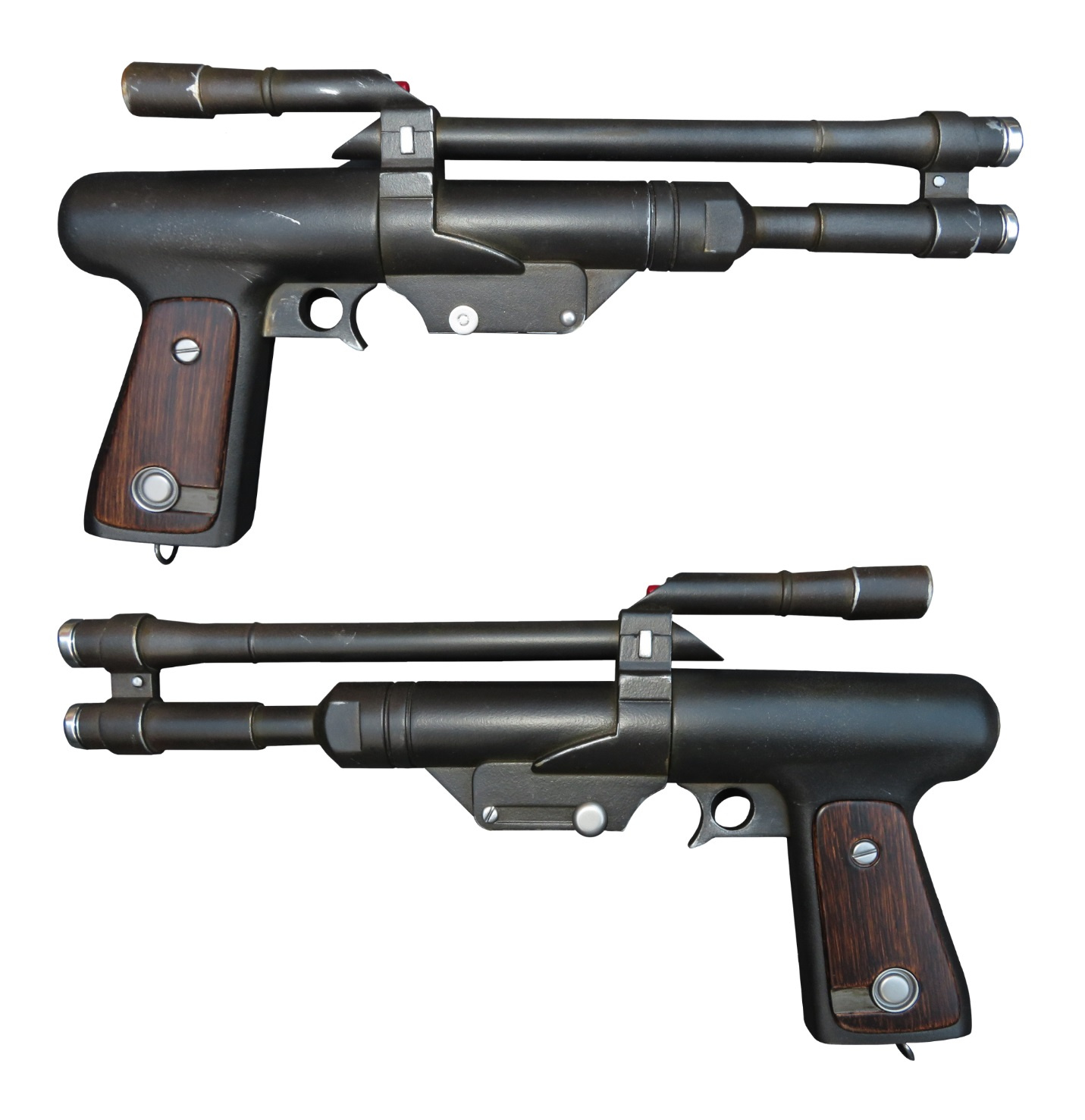 - Base of the pistol is an actual Sedgley Mark V flare gun or a direct replica, not a 3D print.