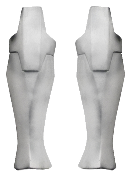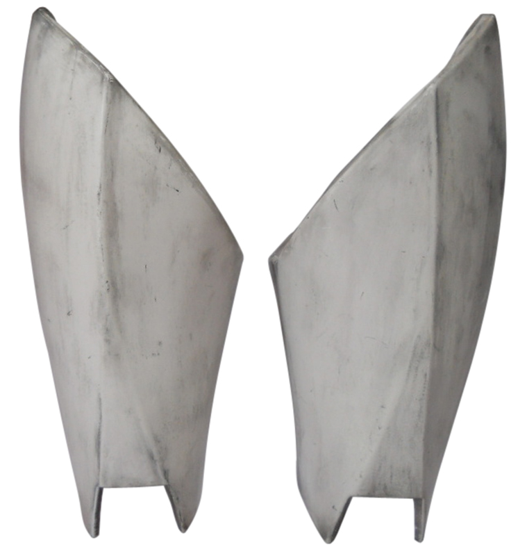 - Front of thigh armor has a flat triangular area near the knee with a notch cut out for the knee armor.