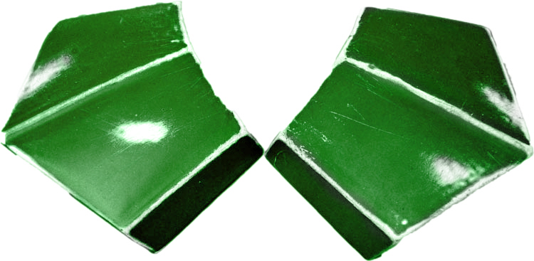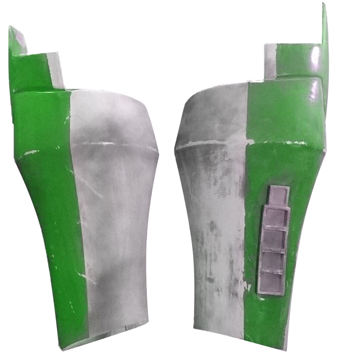 - Elbow plate is painted green on the outer half, white on the inner (relative to the wearer's torso).