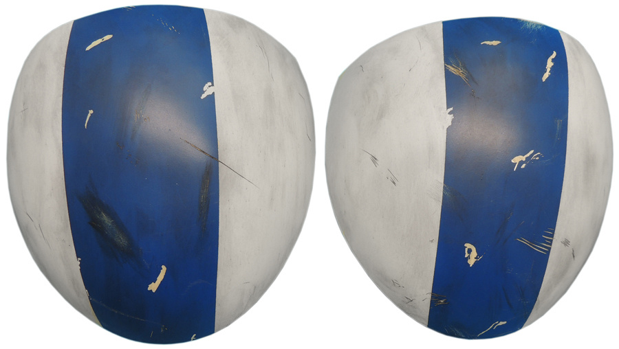 - Shoulder armor are worn reverse style, with curved point toward bottom and flat edge toward top.