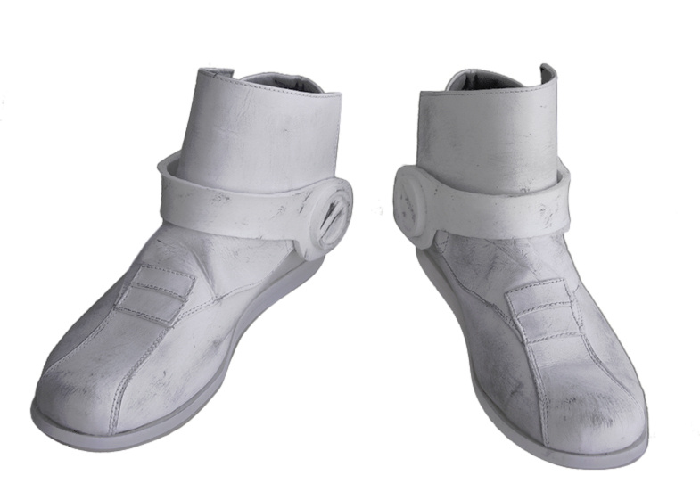 - The boots have armor detail to include a natural seam at the toe and a strap that goes over the top of the foot with two protruding disks at each side of the strap.