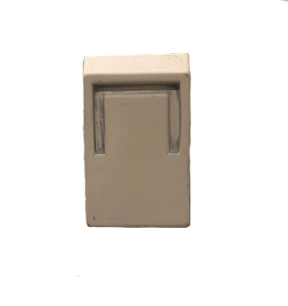 - A strap across the top of the foot has two (2) flat white discs on either side of the foot, terminating the strap.