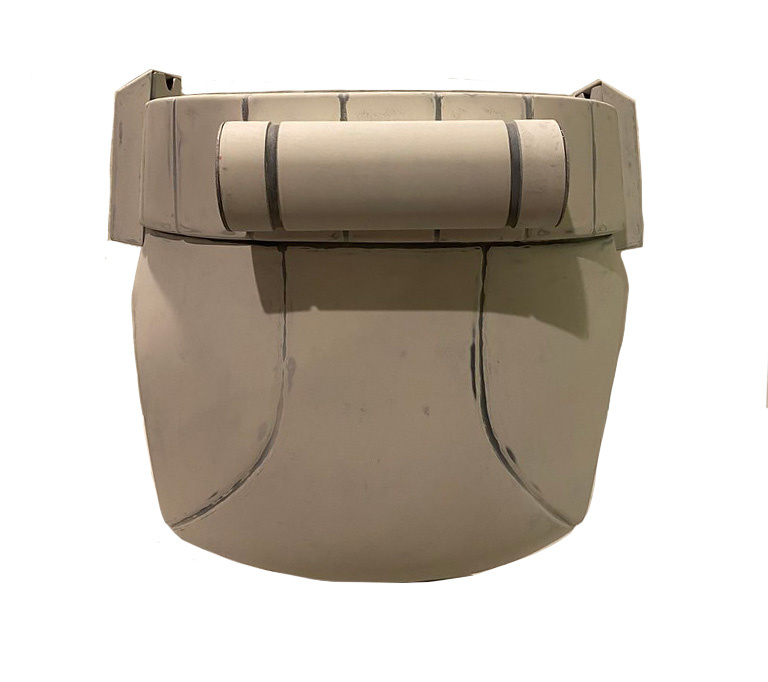 - Back armor has a detail plate consisting of four grey circles and five grey horizontal bars.