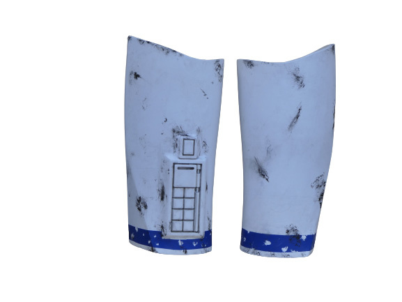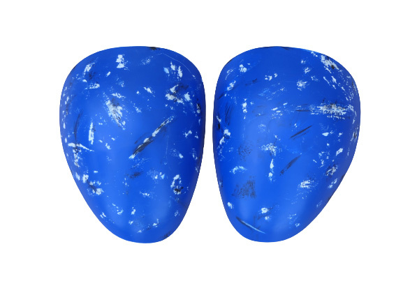 - Blue areas are weathered with various scuff marks.