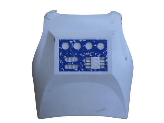 - Back has a detail plate with four circles on top, two elongated areas on left, and vents on lower right.