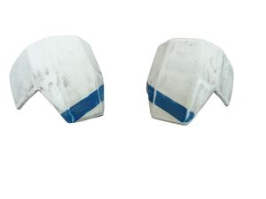 - Armor is painted matte or satin white, with a blue stripe detail that matches with the detailing on the forearms.