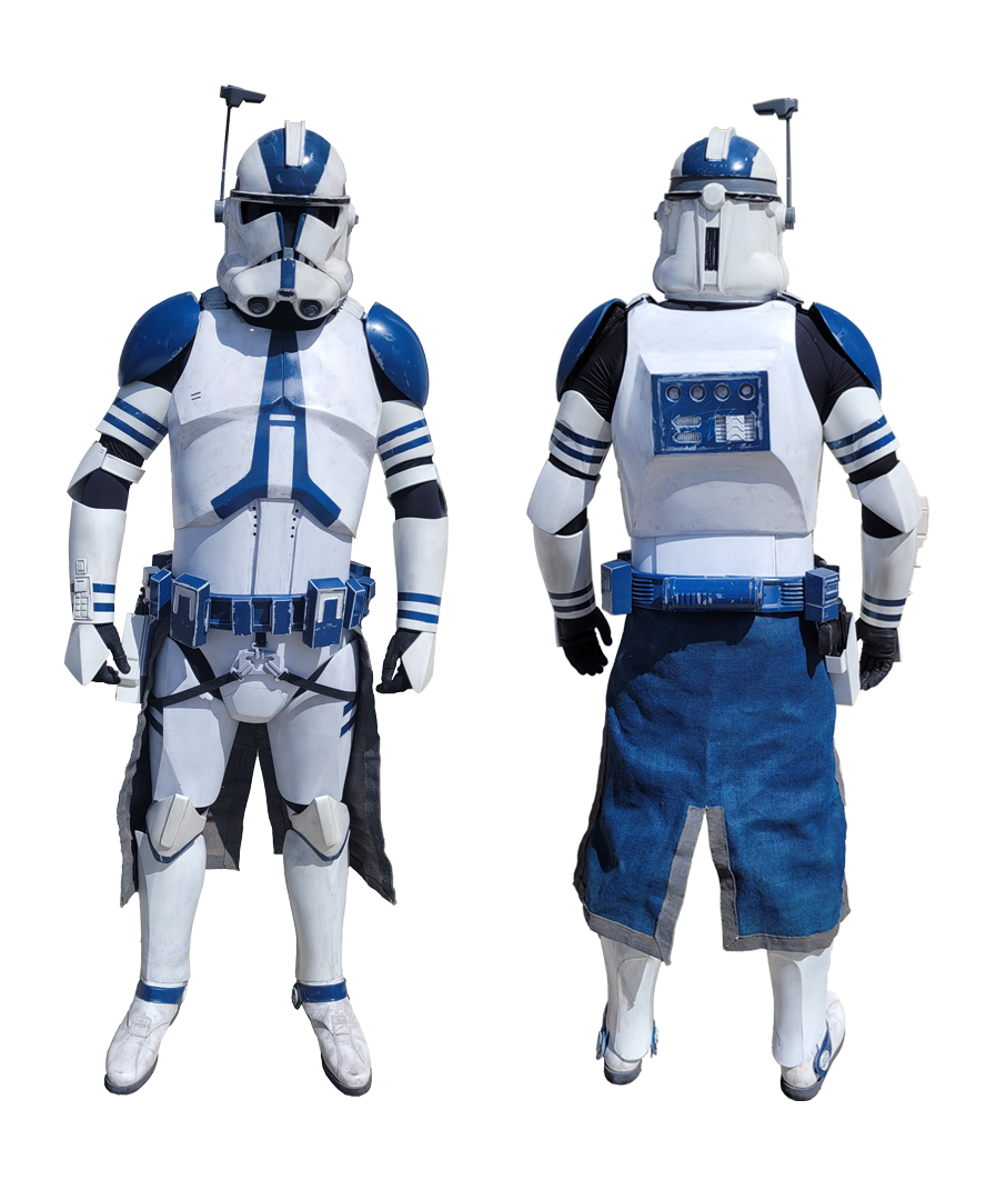 This is a visual guide used for 501st costume approval, not a how-to for construction. Construction details are found at the costume's Detachment website. Measurements provided here are generalized, and not criteria for approval. All 501st costumes are proportionate to the wearer in terms of size, fit, and scale. During evaluation, both text and images (CRL and Reference) must be considered. When in doubt about a feature of a submitted costume, GMLs should post questions in the Legion forum's DL/GML peer review section.