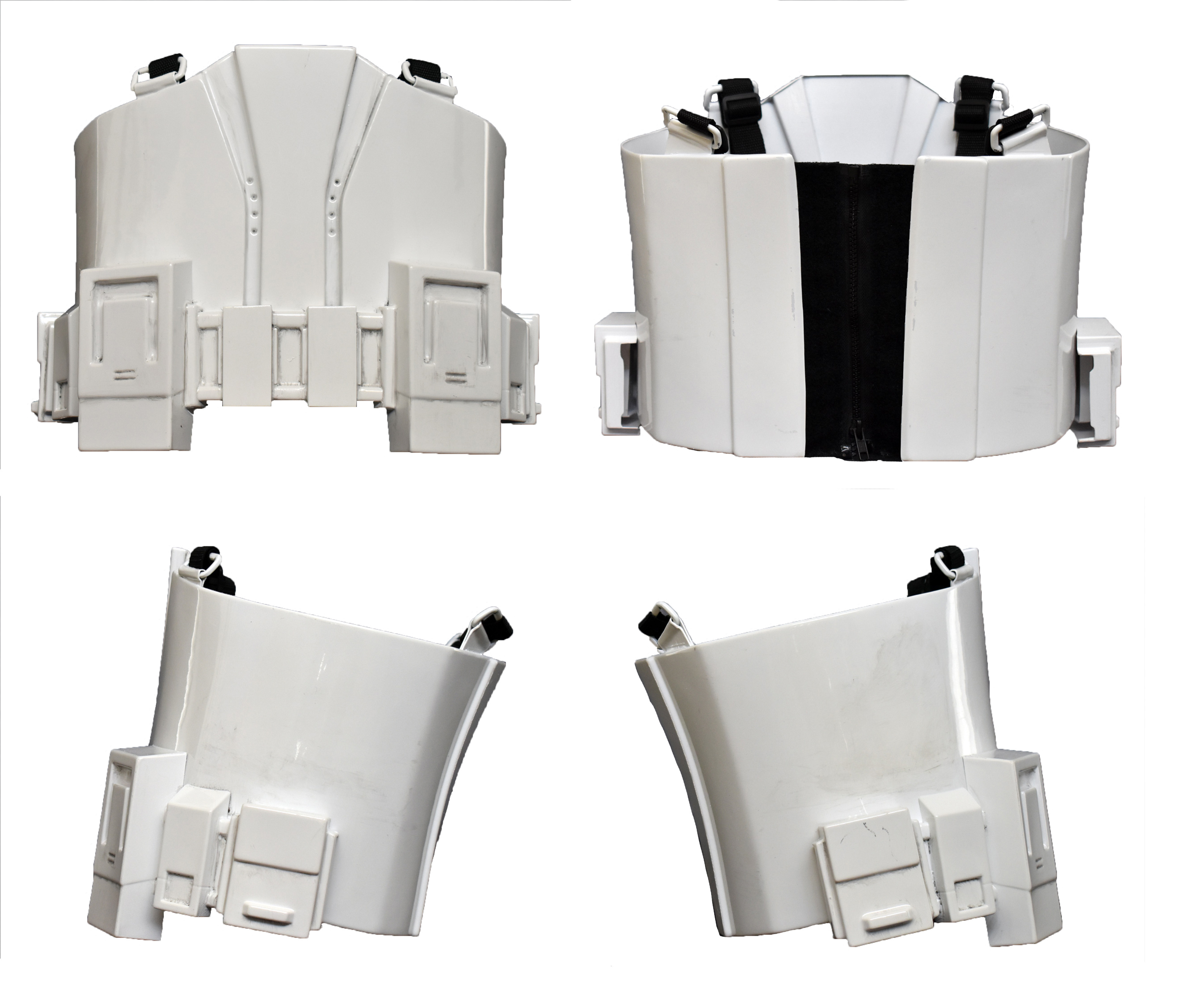 - Kidney armor is connected to the rear belt, which is made of the same hard plastic as the rest of the armor.