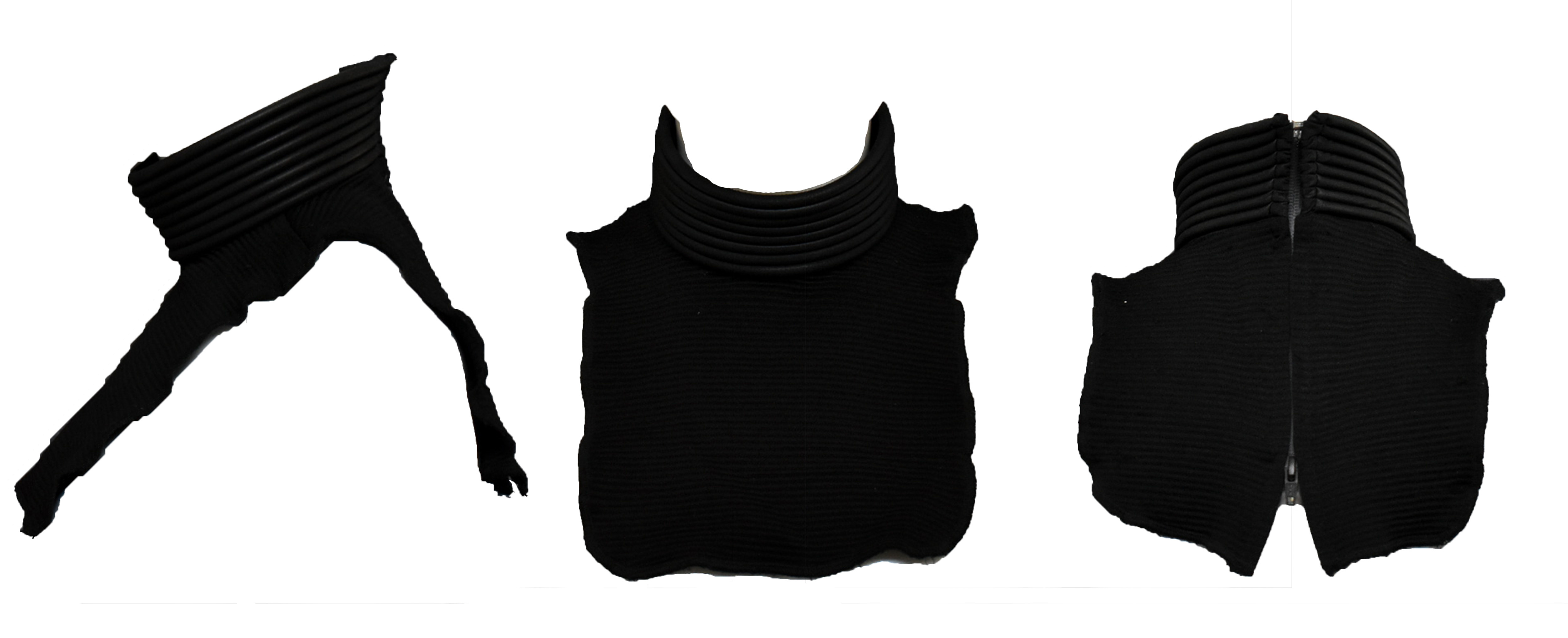 - Armor features two hard vertical edges at “bend” points to conform to the wearer.