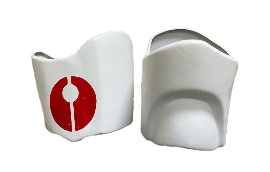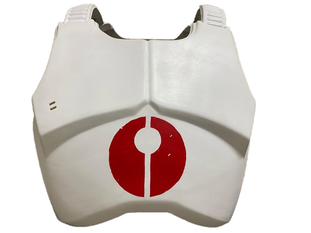 - Armor has a front hard line outside edge and inside rounded edge, with indented area on back.