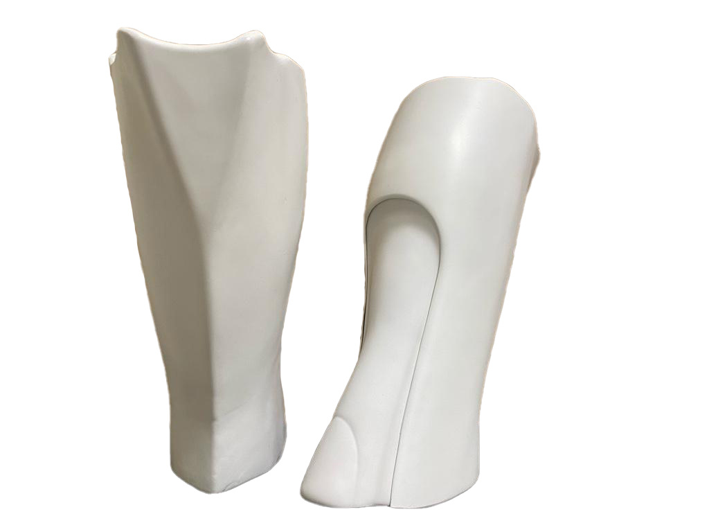 - Back of lower leg armor features arched indentation, just under the calf, that follows down to the ankle.