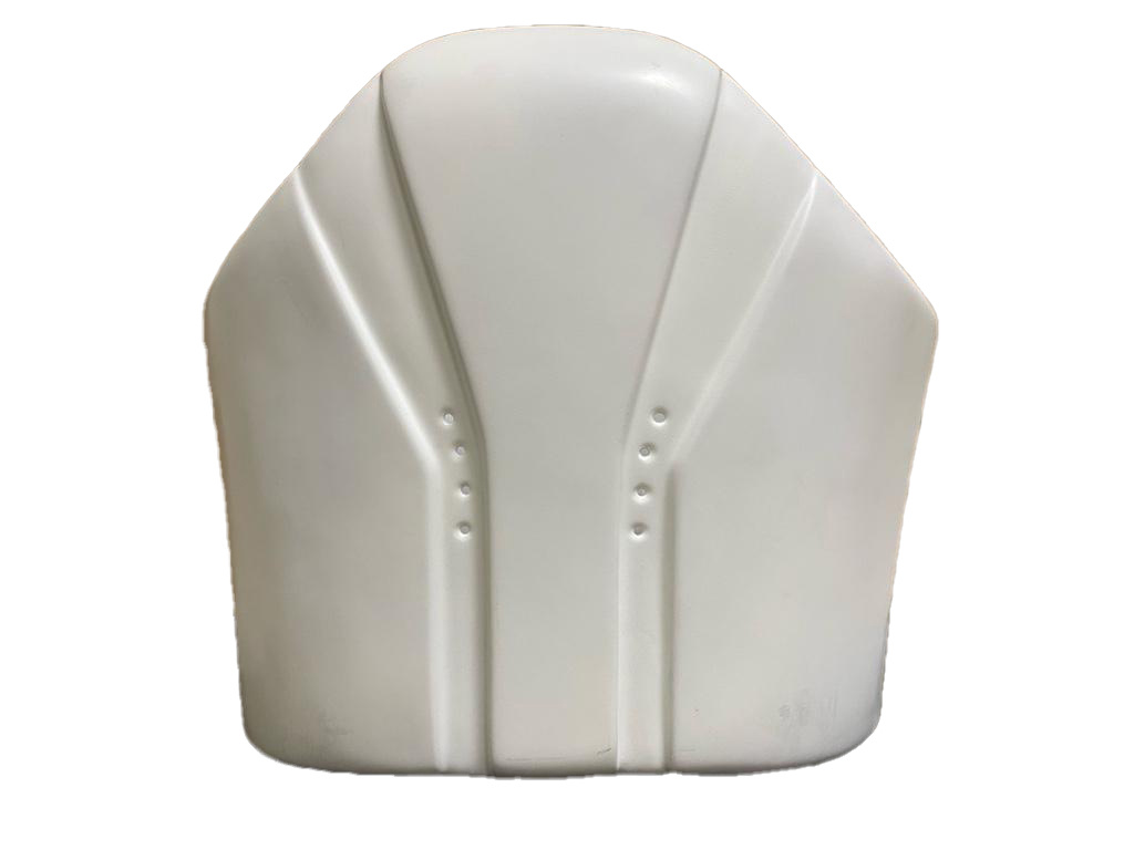 - Back has a detail plate with four circles on top, two elongated areas on left, and vents on lower right.