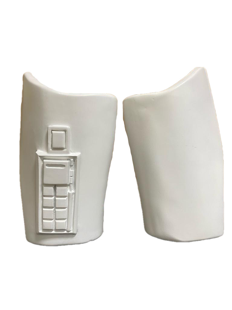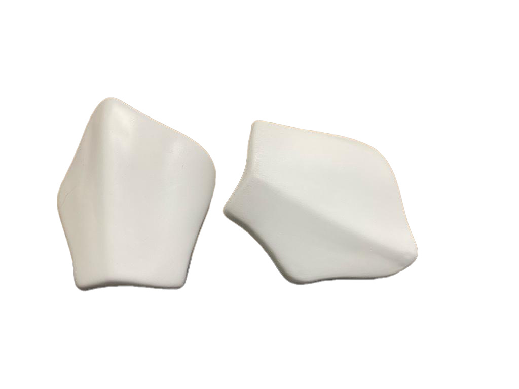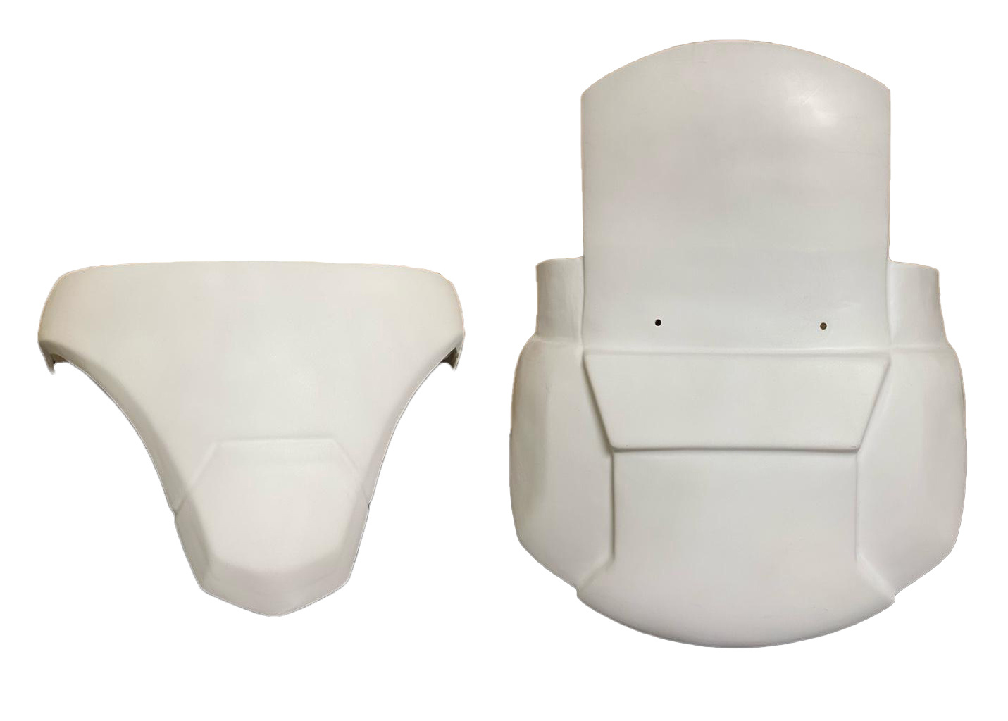 - Armor has a front hard line outside edge and inside rounded edge, with indented area on back.