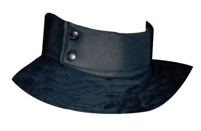- Black over the wrist gloves made of leather, nylon, or other low pile fabrics.