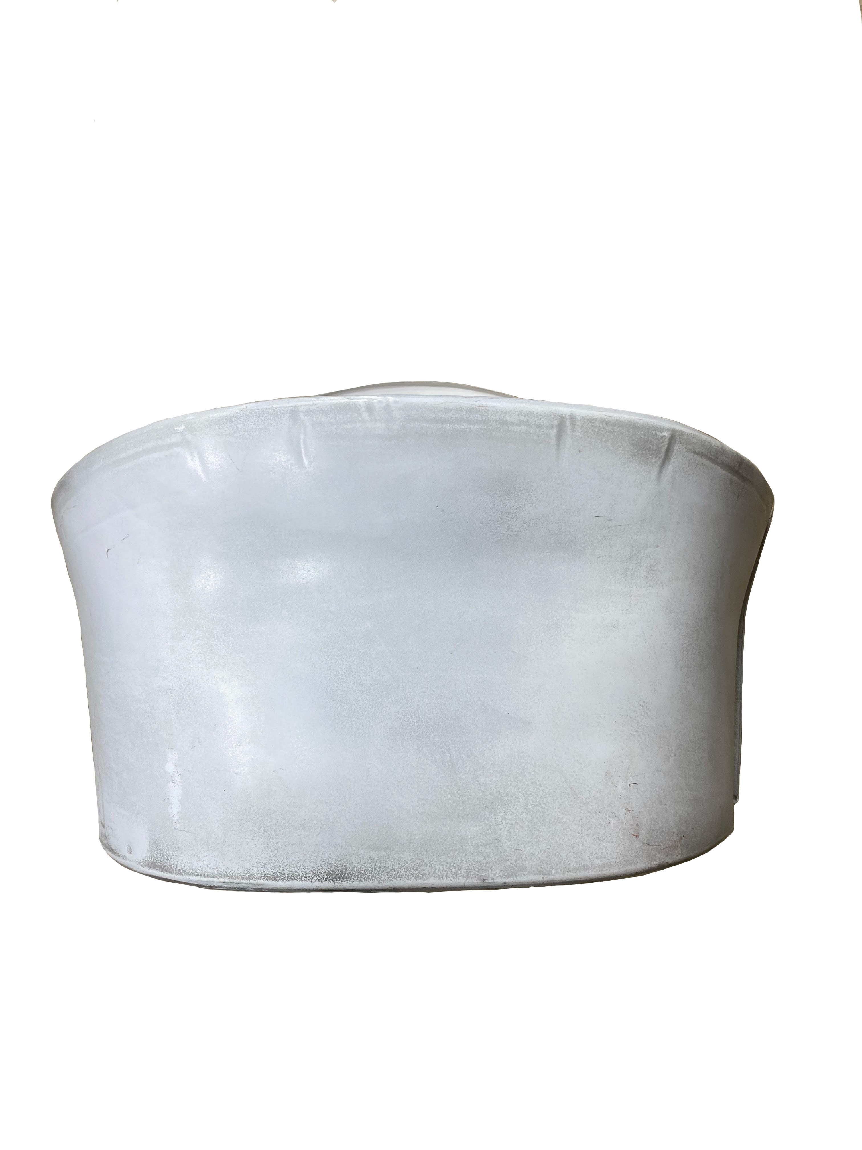 - A strap across the top of the foot has two (2) flat white discs on either side of the foot, terminating the strap.
