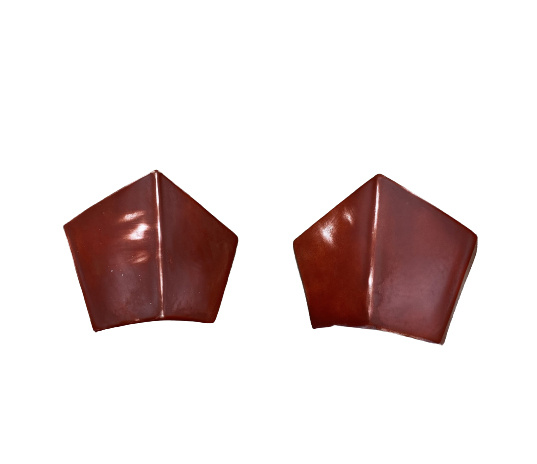 - At the bottom center of the shoulder armor, a small rust brown arched section is present.
