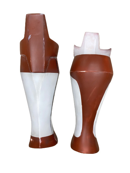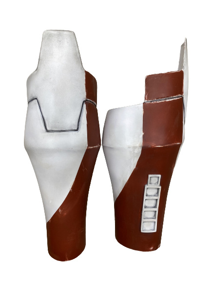 - The top section of the calf going down to the bottom of the knee is painted rust brown around the circumference of the calf armor.