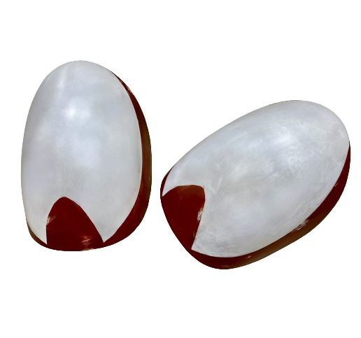 - The dome portion of the rust brown has a rounded edge that starts at the rear of the fin and continues down to the brow line.