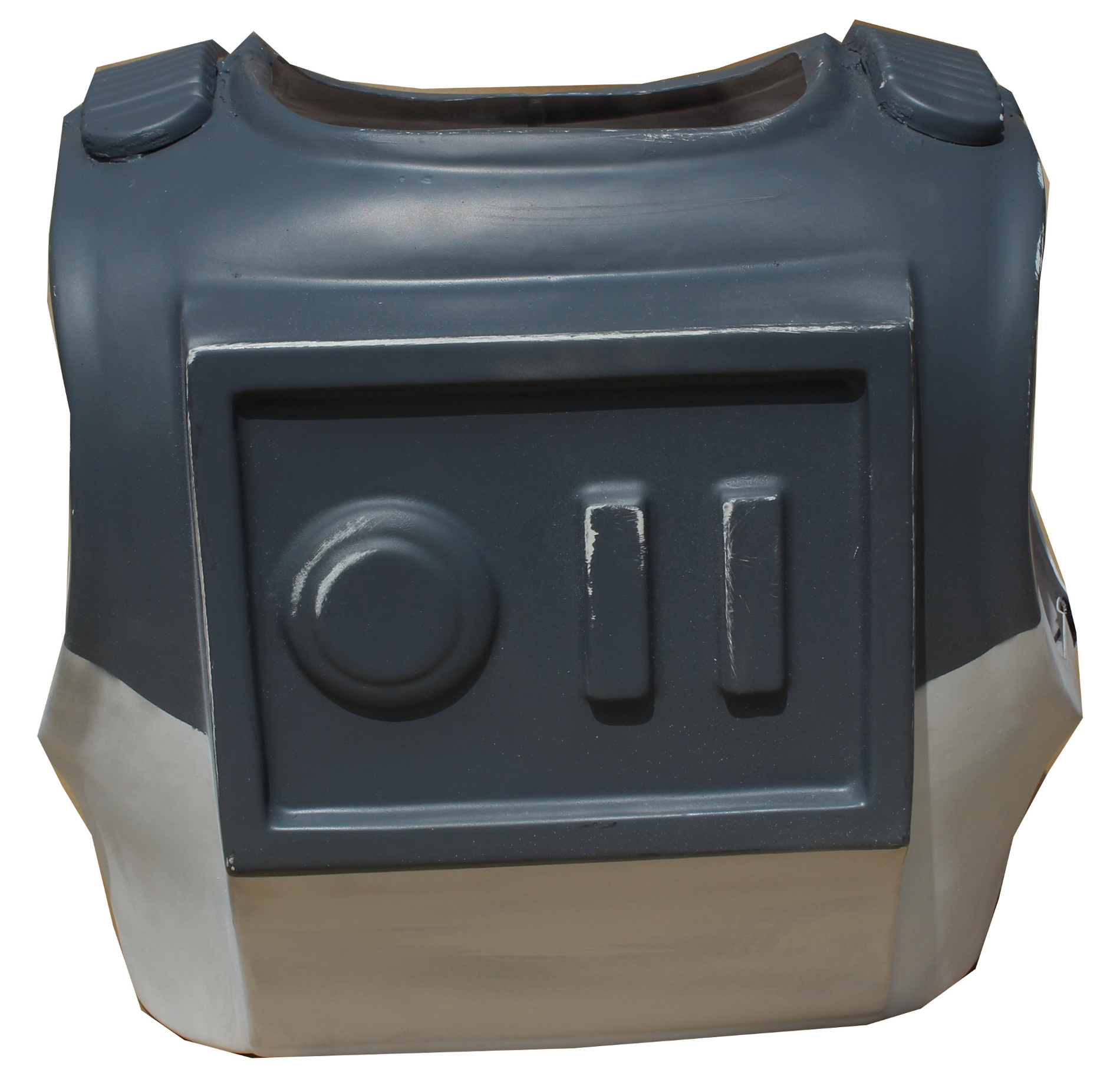 - Lower portion of the chest has a curved notch for the abdomen armor to fit into.