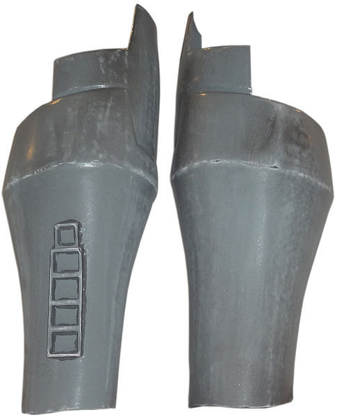 - Front of thigh armor has a flat triangular area near the knee with a notch cut out for the knee armor.