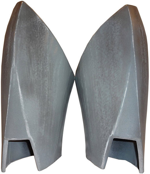 - The left and right sides of the hand plates angle sharply downward to conform to the shape of the hand.
