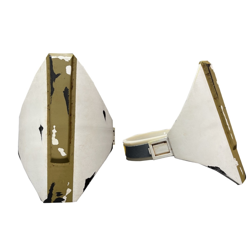 - Ear caps are covered by the macrobinoculars, replaced by an elongated dome painted white.