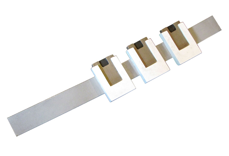 - Four holes, approximately ¼ inch in diameter, are present in each inset line.