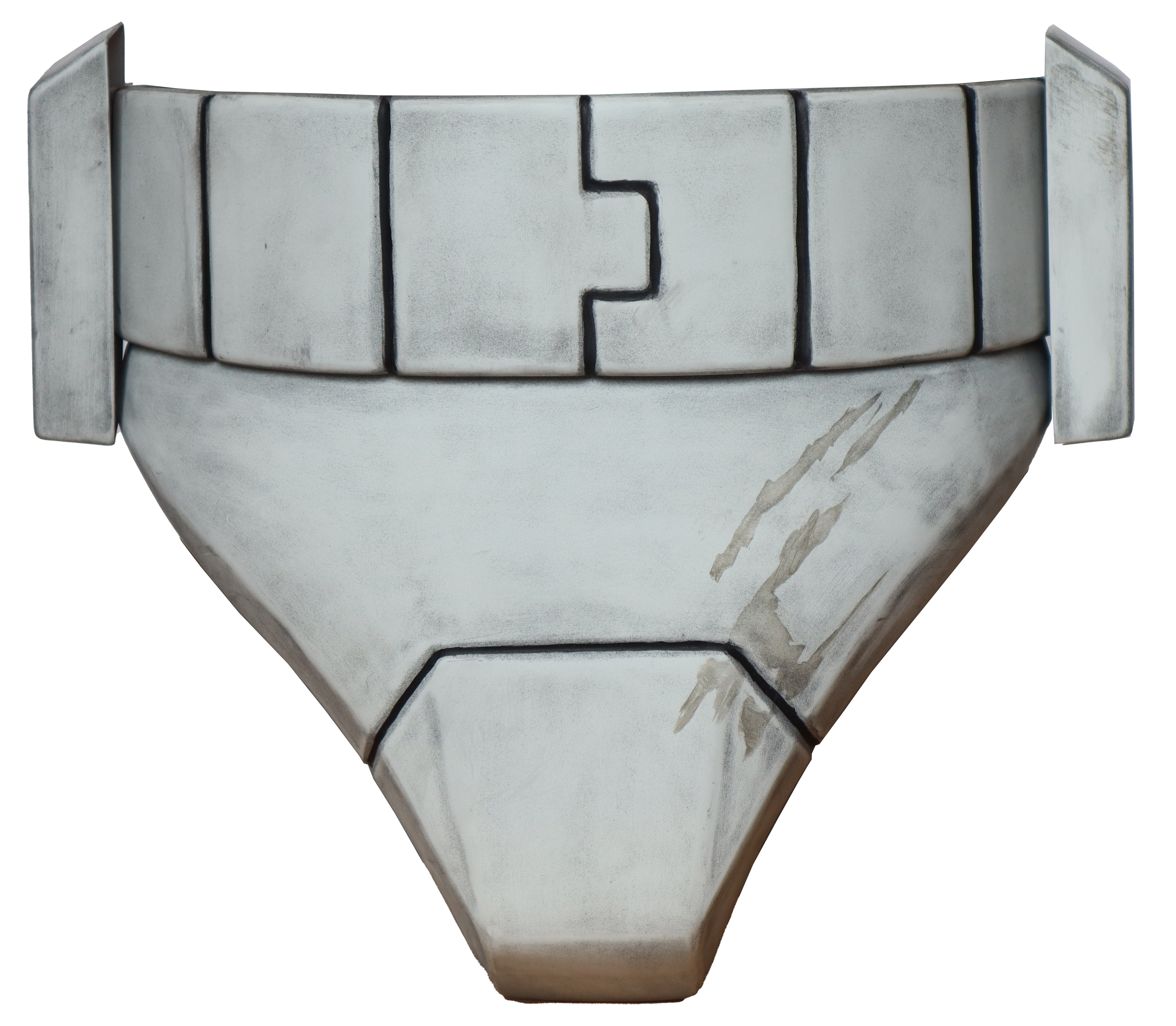 - Phase II animated style codpiece and belt front armor that are painted matte or satin white.