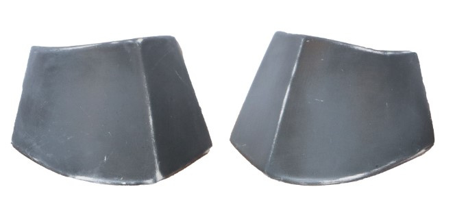- Front of thigh armor has a flat triangular area near the knee with a notch cut out for the knee armor.