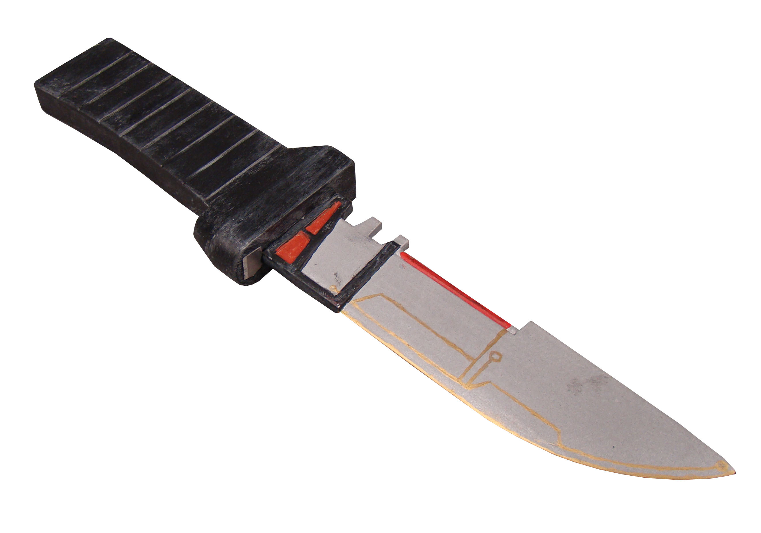 - The 2 enclosed shapes at the base of the blade are painted red.