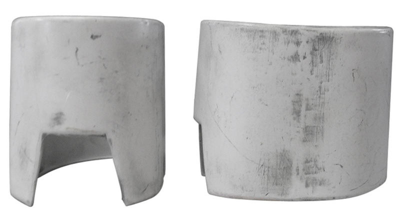 - A strap across the top of the foot has two (2) flat white discs on either side of the foot, terminating the strap.