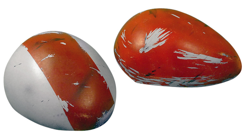 - A red stripe is painted down the center of the helmet that ends at the nose of the helmet and squares off at the rear of the helmet.