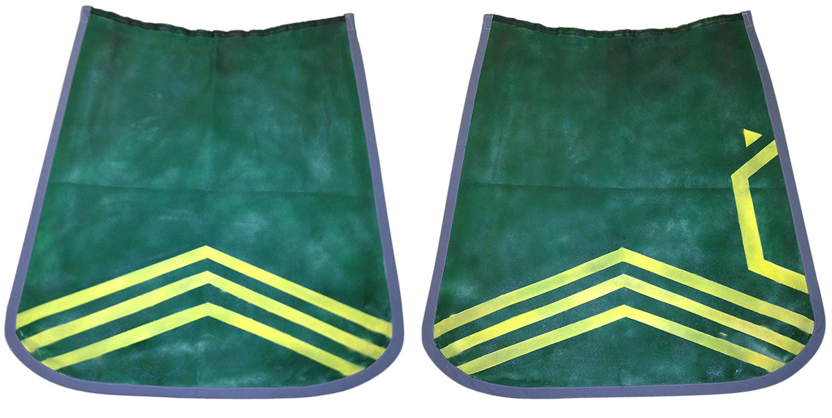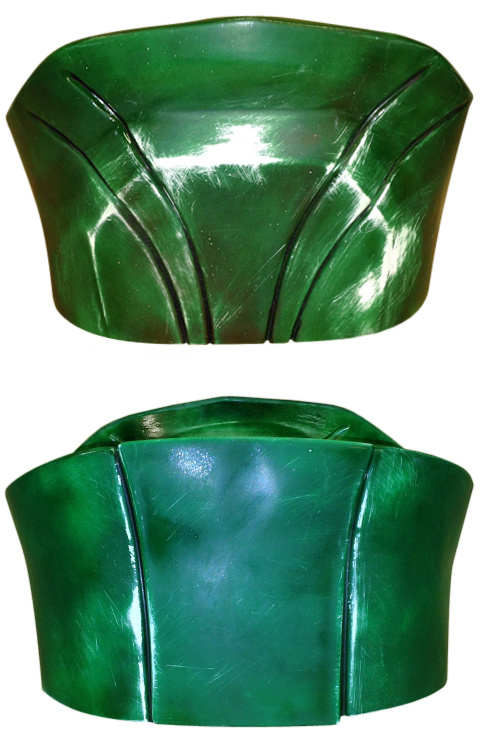 - Spaced below the center point is a green border that parallels green on upper part of armor.