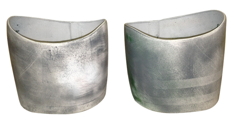 - Armor is seamless and has a calf spoon that inserts behind lower leg indent edge and is secured in place.