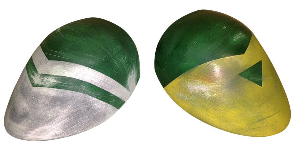 - Green covers about the top 1/3 of armor and has a bottom edge coming to a center point.