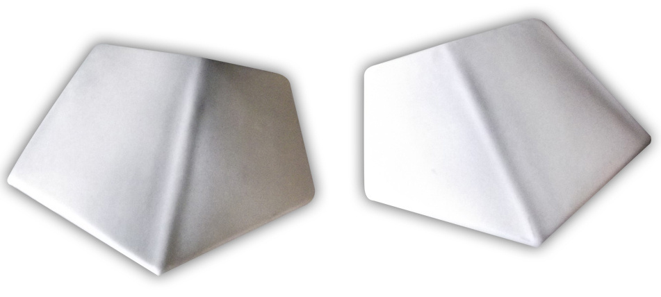 - Hand plates have an angled peak that comes to a point over the index or middle finger, just past the main knuckle of the hand.