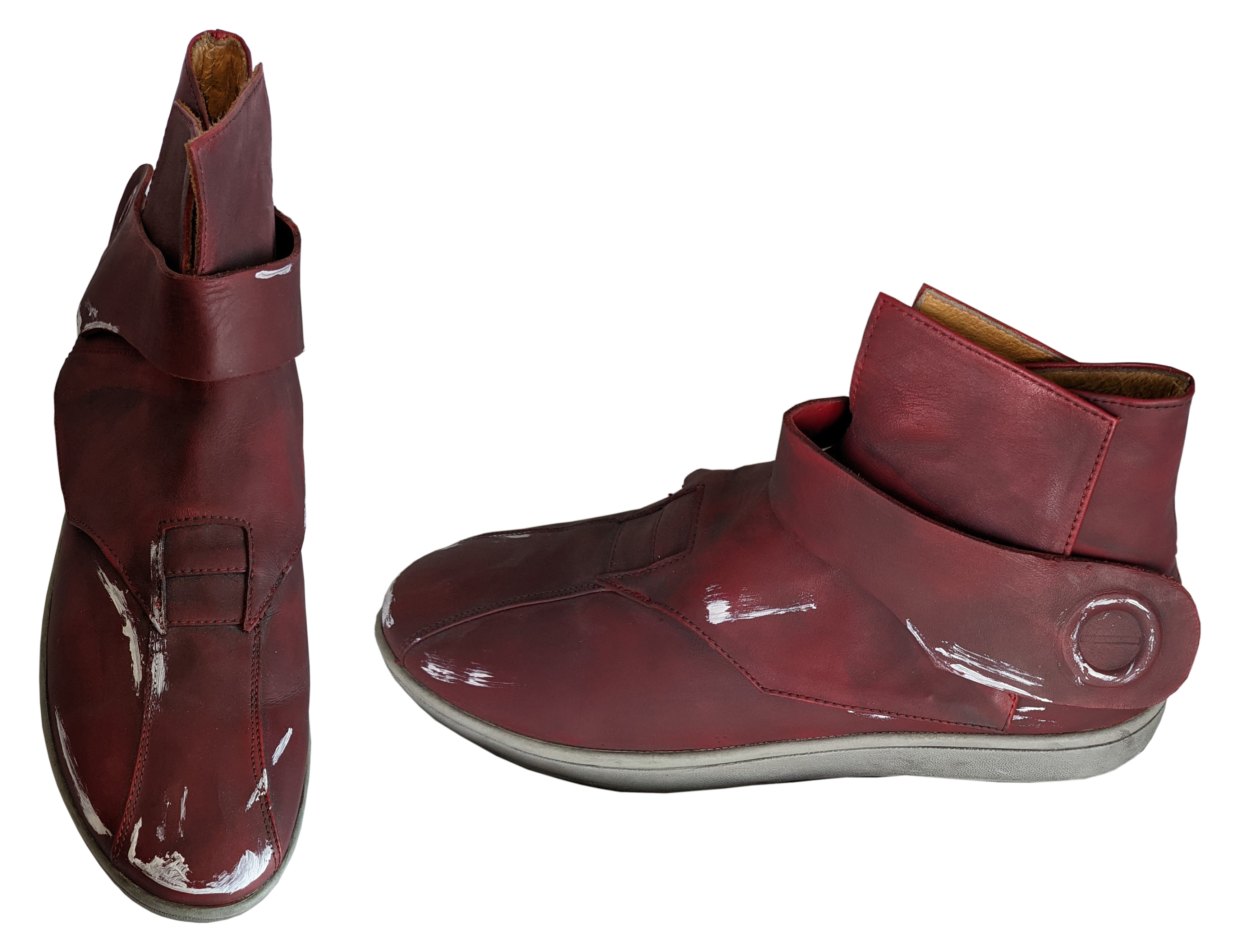 - Maroon ankle high or tall enough to cover the ankle and eliminate any black undersuit visible at the ankle, boots.