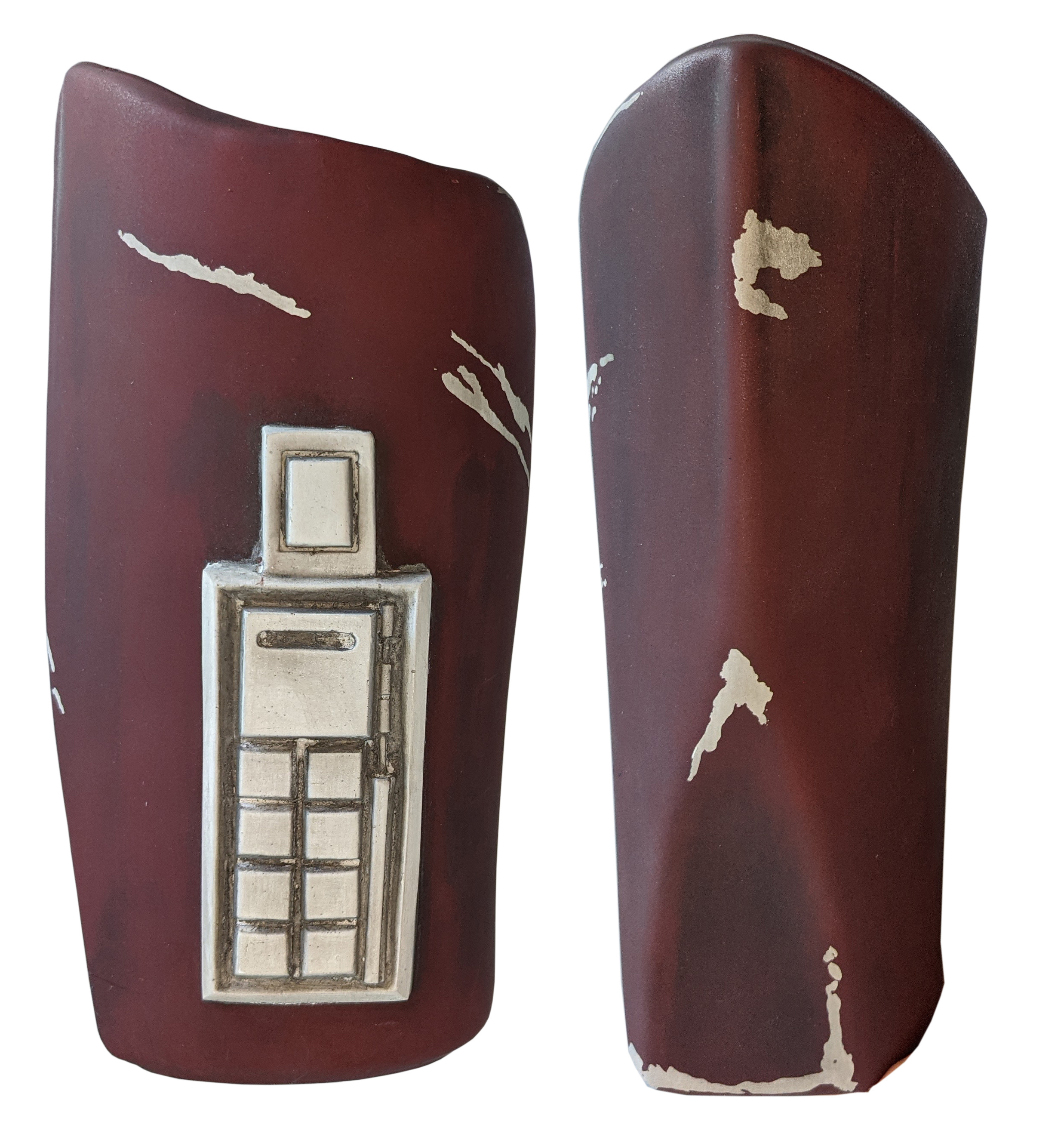 - Armor is painted matte or satin white with maroon over top.
