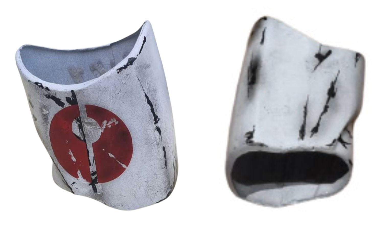 - Armor has two parallel dashed detail slots on each outside edge of the elbow at the strap connection.