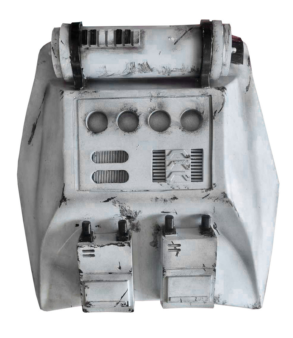 - Black detail greeblie, with ridge pattern oriented forward, is imbedded in chin opening.