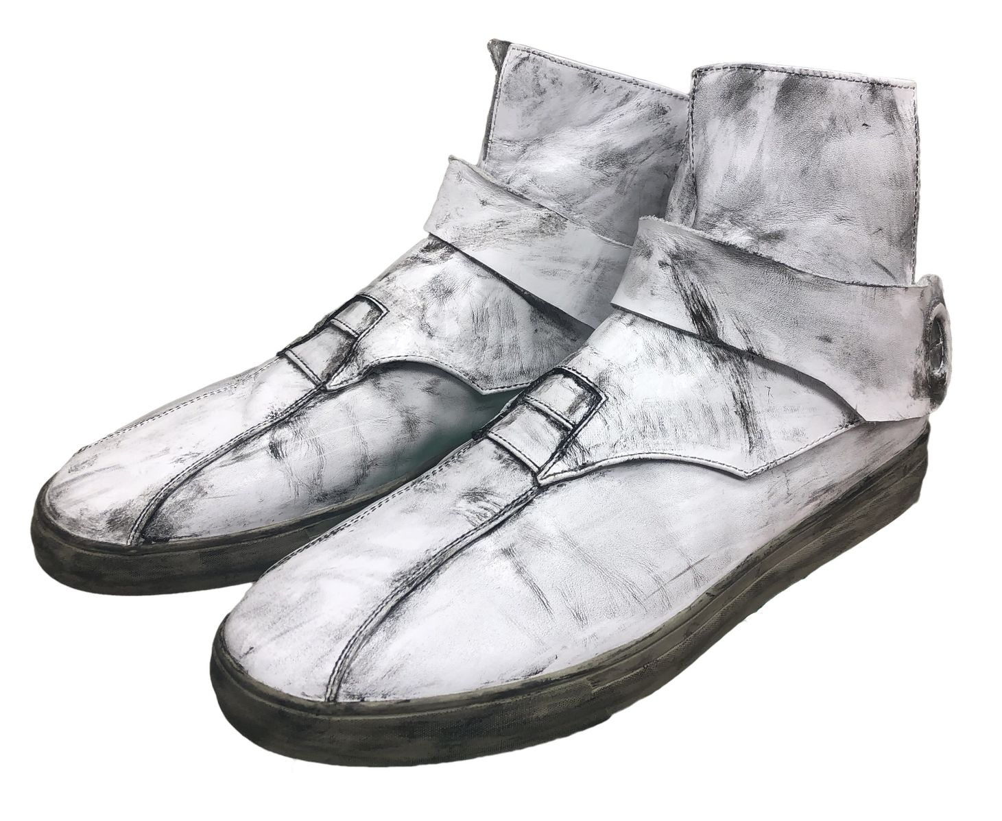 - White, ankle high boots or tall enough to cover the ankle and eliminate any black undersuit visible at the ankle.