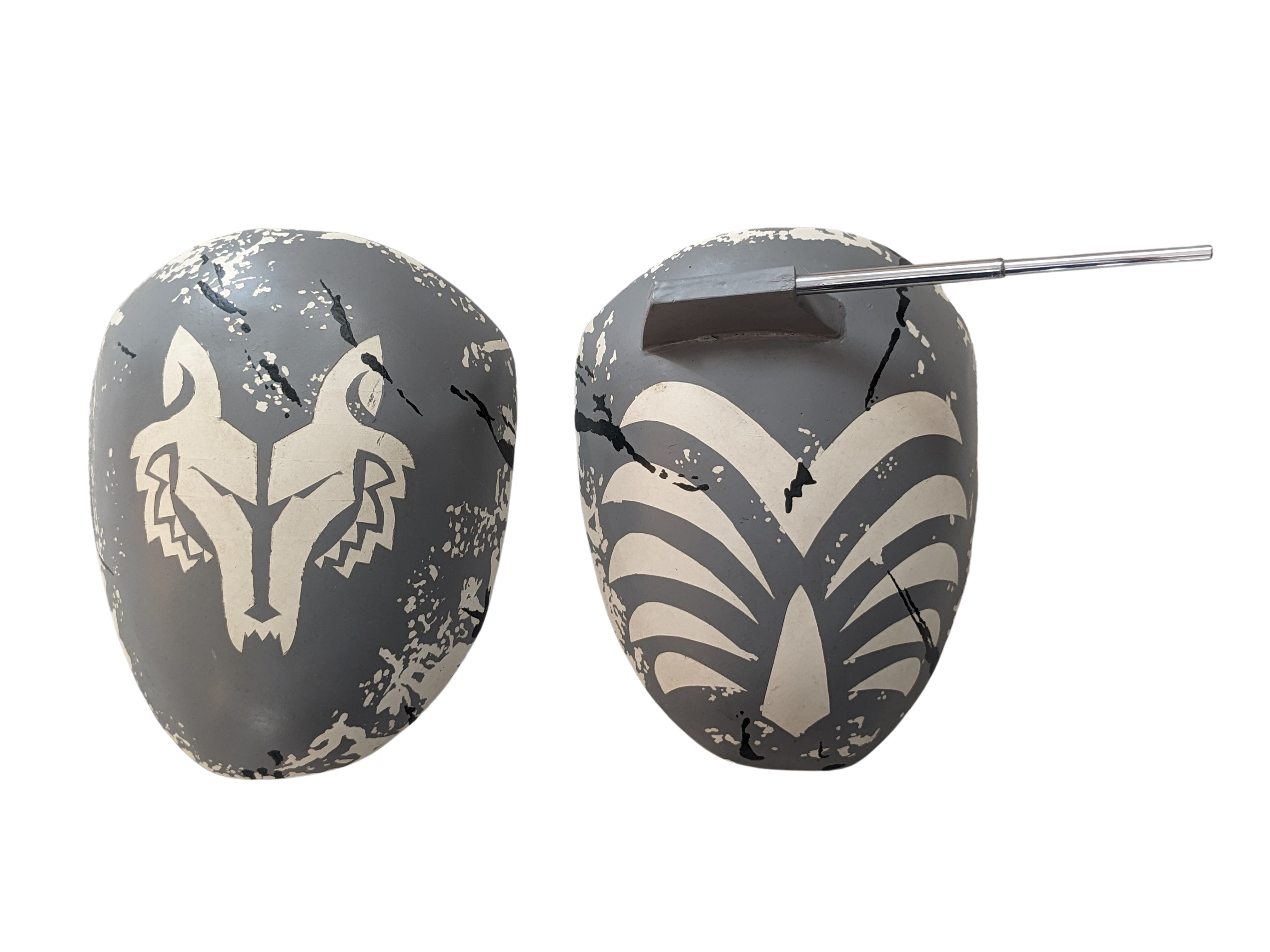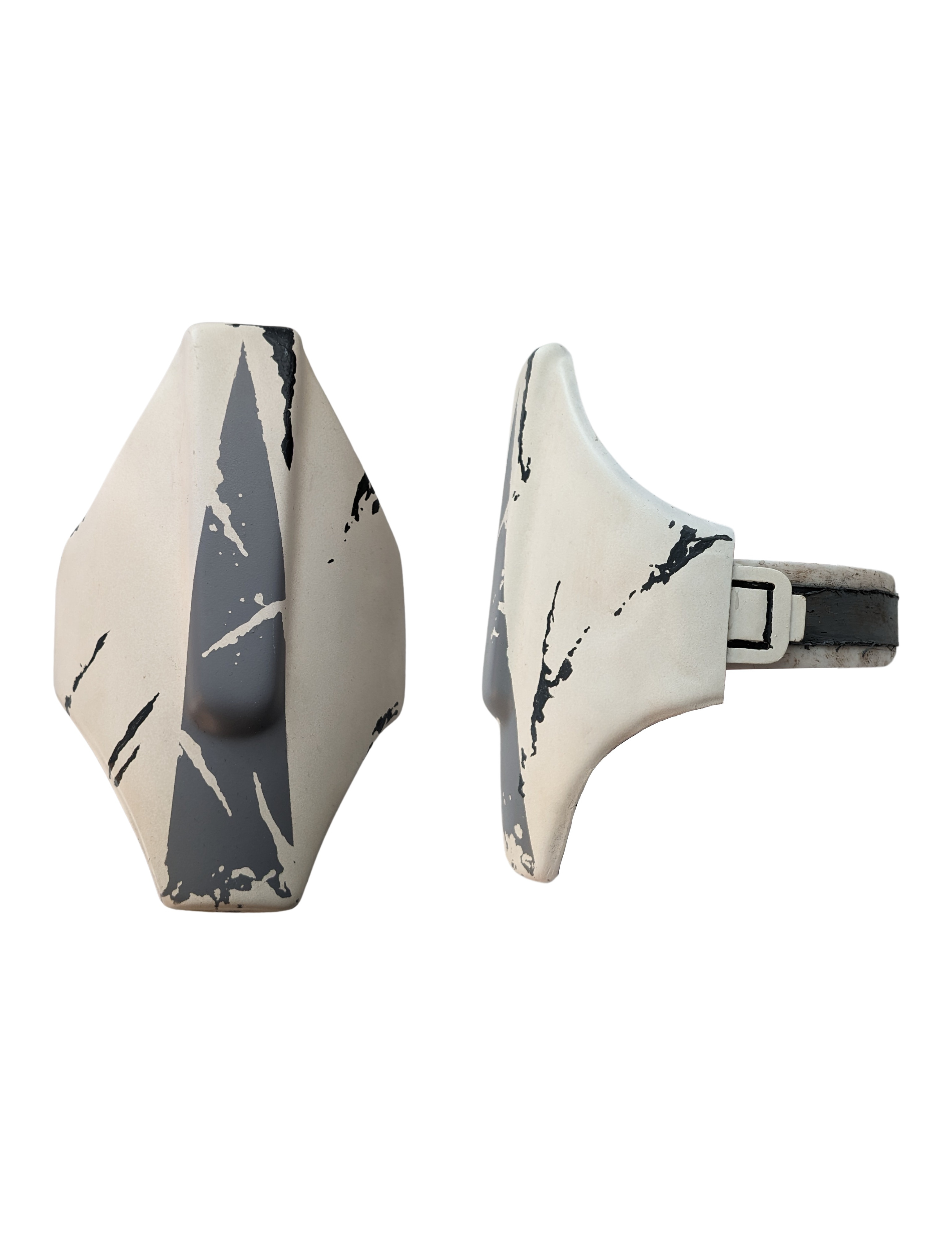 - Forearm armor features grey paint starting from the wrist, going up each forearm, before ending with “teeth” style markings following visual references.