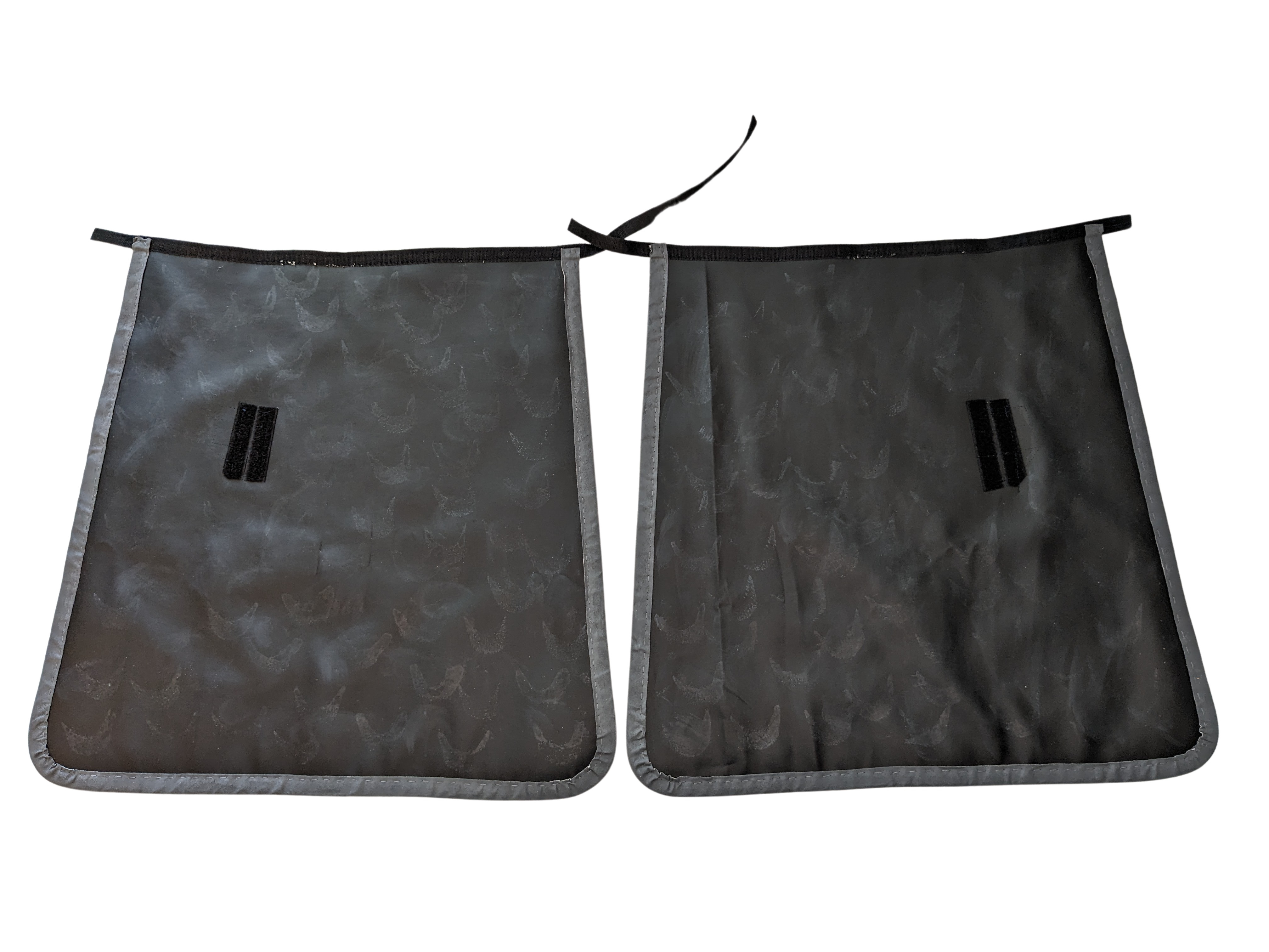 - Black non-textured material, either one-piece or two-piece construction with no visible zippers or logos.