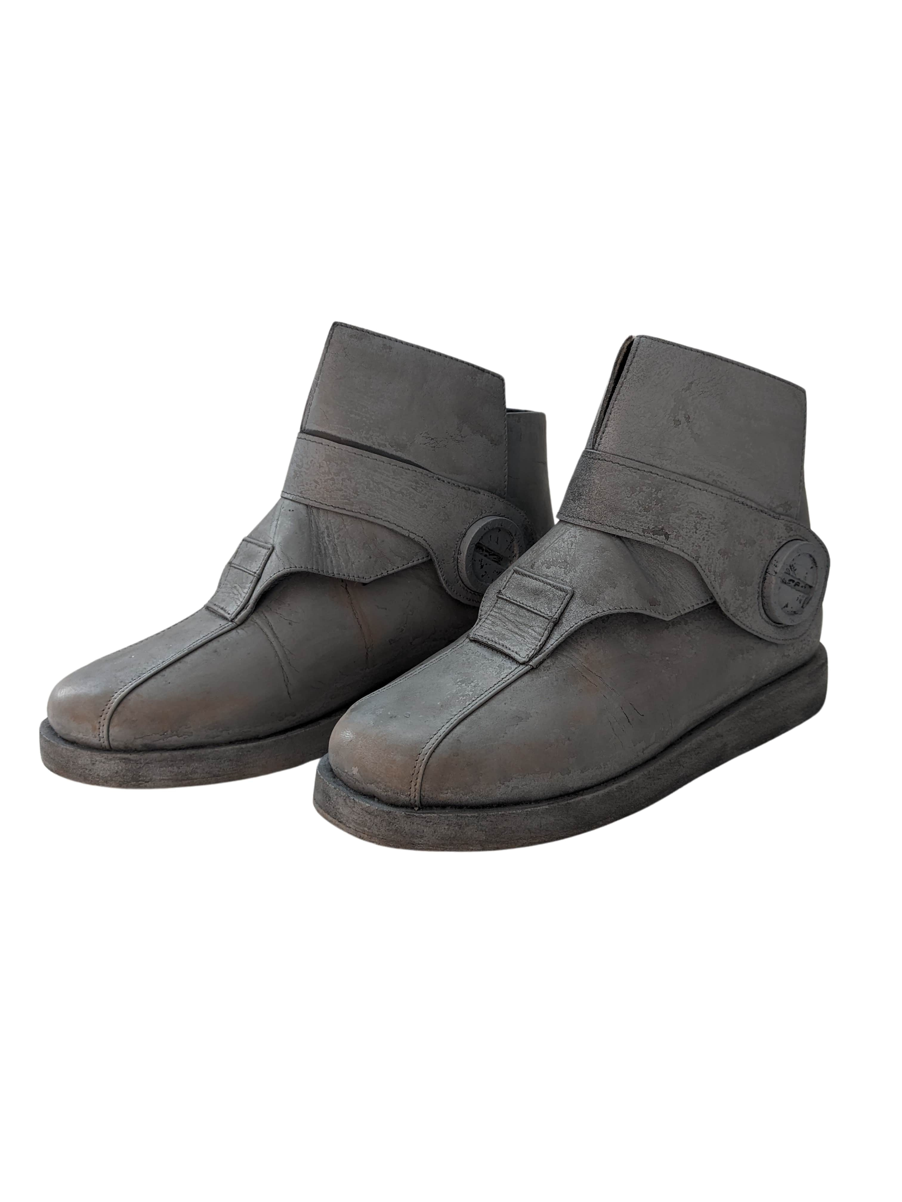 - Grey, ankle high boots or tall enough to cover the ankle and eliminate any black undersuit visible at the ankle.