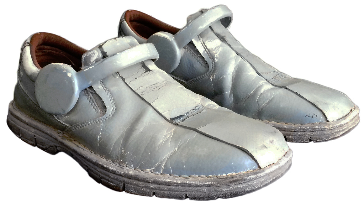- A strap across the top of the foot, and 2 flat white discs on either side of the foot, terminating the strap.