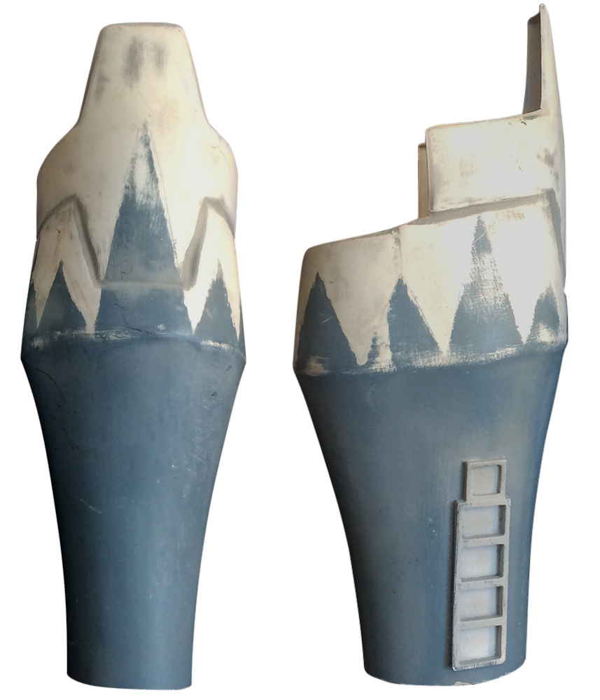 - Much of the lower forearm pieces are painted with Blue-gray markings consisting of pointed peaks of varying heights.