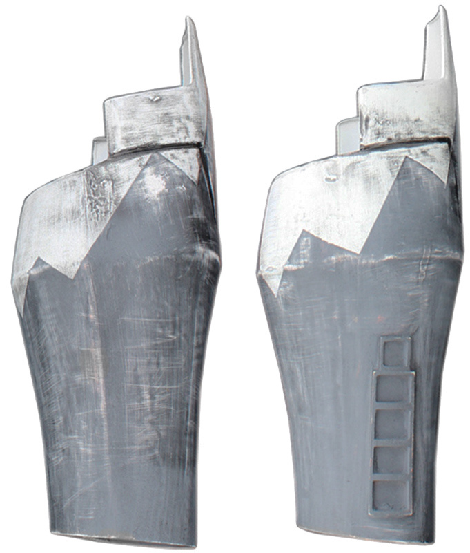 - Much of the lower forearm pieces are painted with Blue-gray markings consisting of pointed peaks of varying heights.