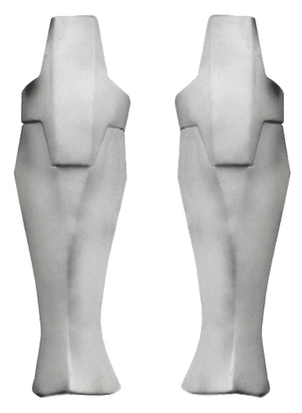 - Front of thigh armor has a flat triangular area near the knee with a notch cut out for the knee armor.