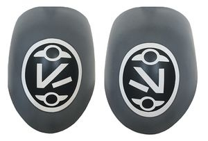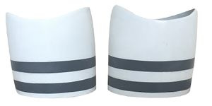 - A strap across the top of the foot, with (2) flat white discs on either side of the foot, terminating the